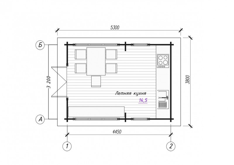 Летняя кухня из дерева ЛК-1 (3.2х4.5)