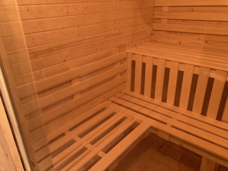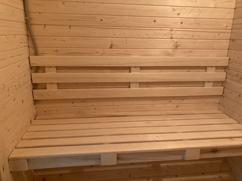 1. Корпус сауны: ширина 2,25м, общая длина 4м, парная 2,0м, предбанник 1,65м. Выполнен из елового профилированного бруса технической сушки толщиной 43мм.